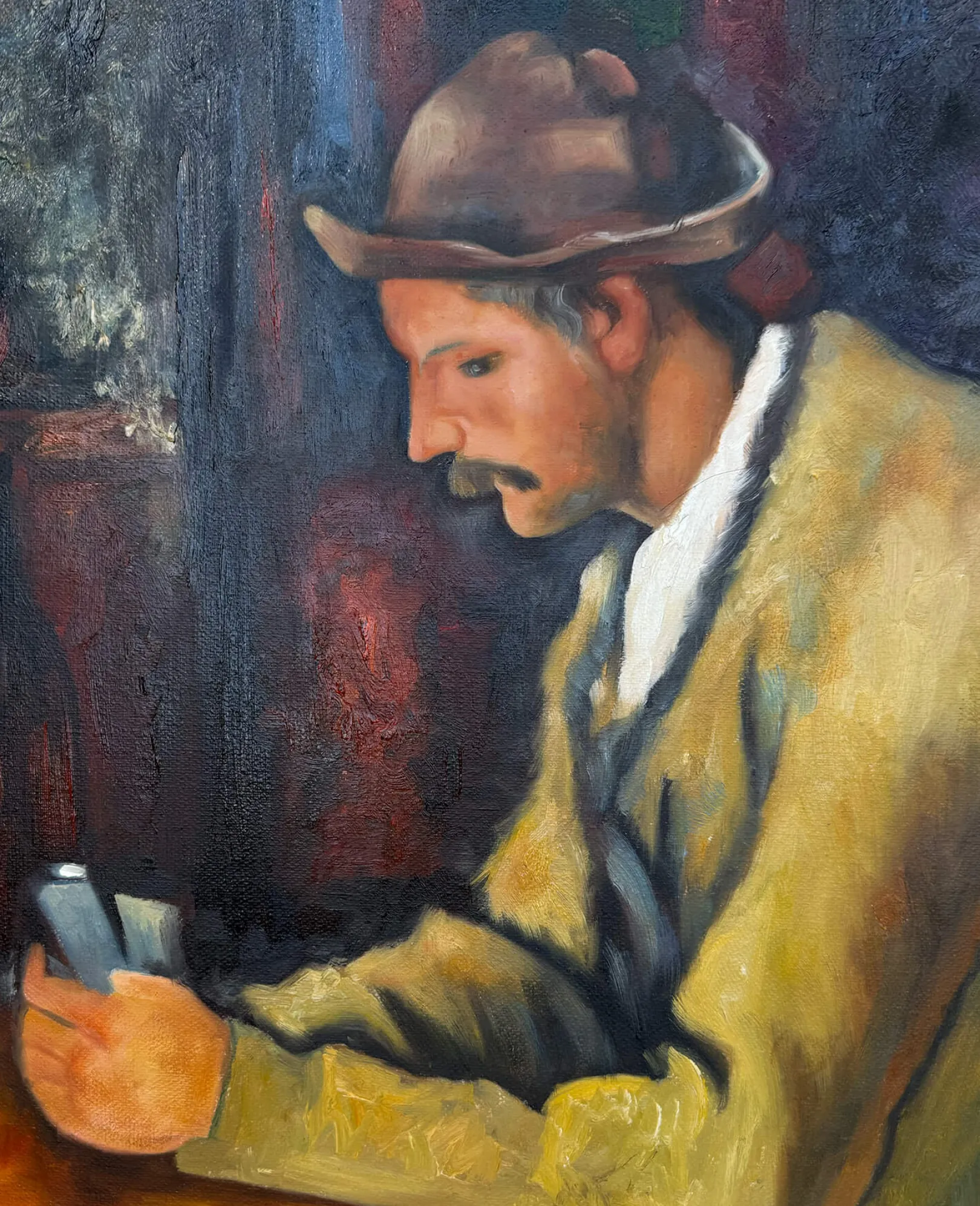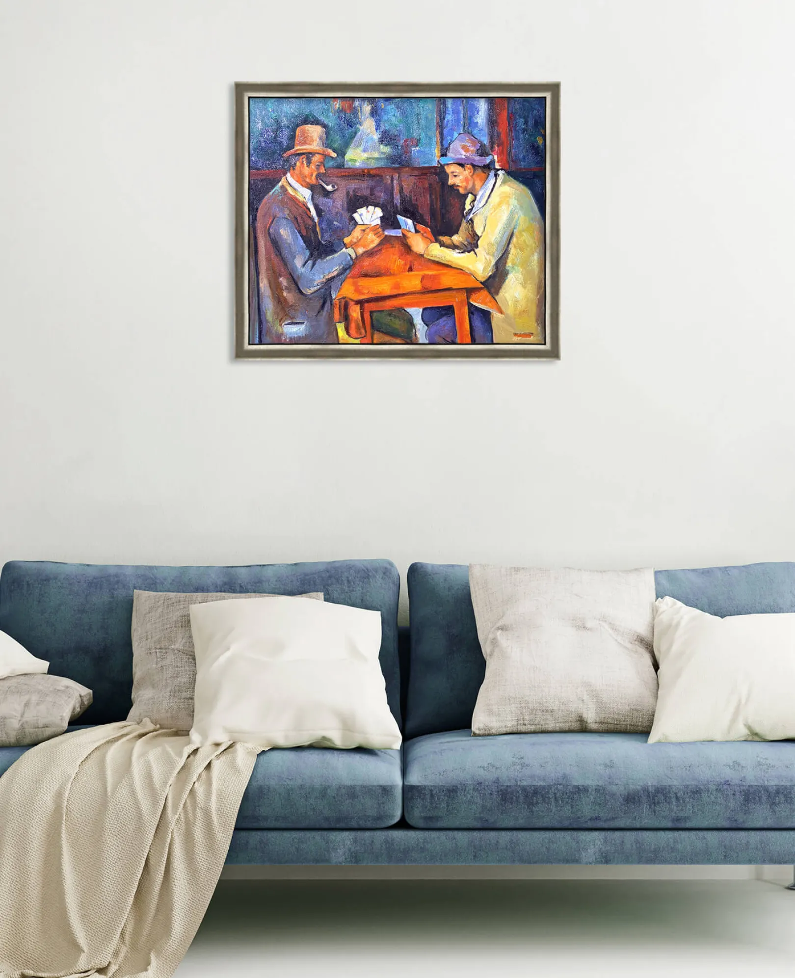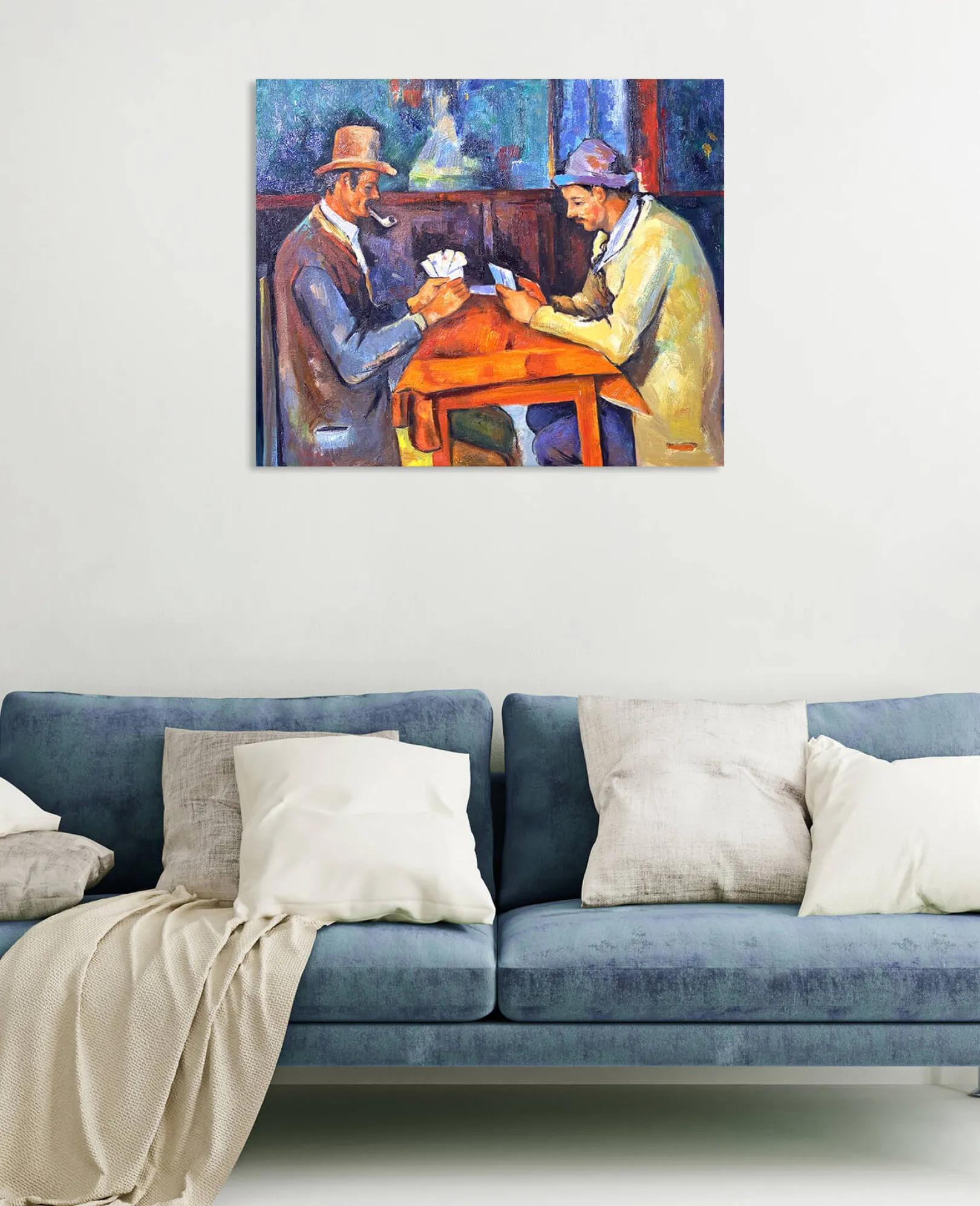 In den 1890er Jahren, auf dem Höhepunkt seiner Karriere, schuf Paul Cézanne eine Reihe von Bildern, die sich um das Spiel drehen. Der Künstler reduziert die Linien und Details, um das Wesentliche zu bewahren: die Ernsthaftigkeit der Konfrontation zwischen diesen beiden Figuren. Dieses Werk ist wie in der Zeit aufgehoben.