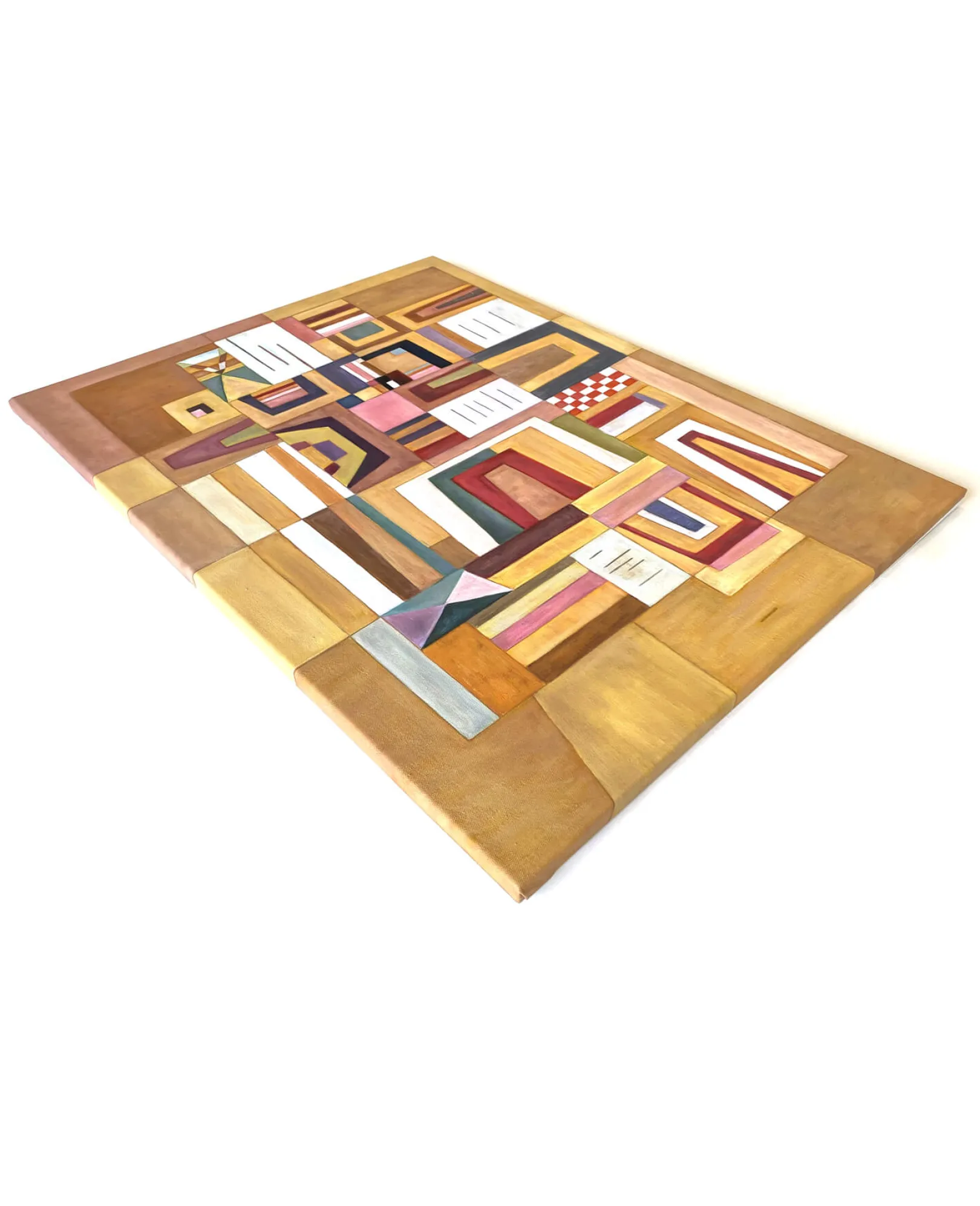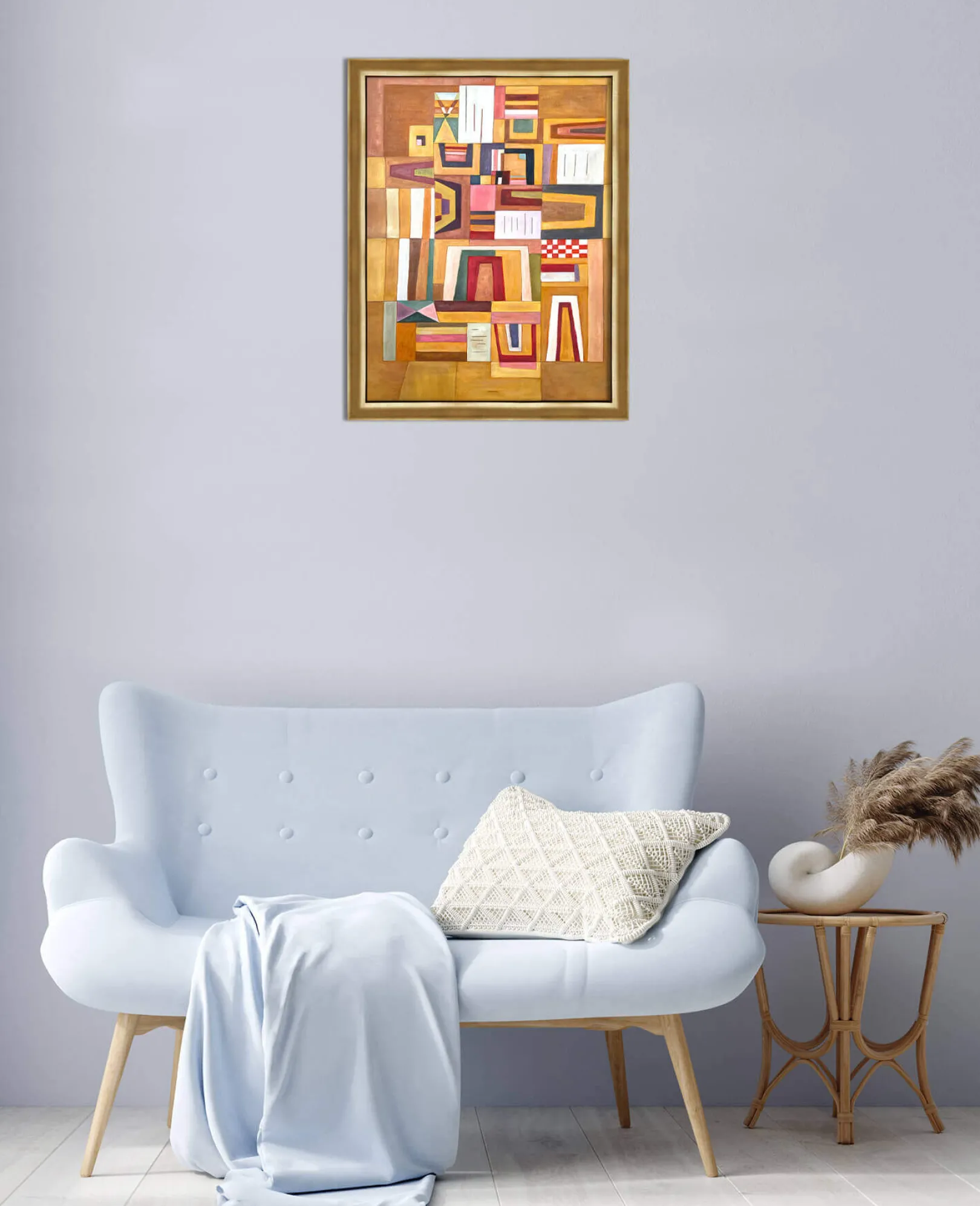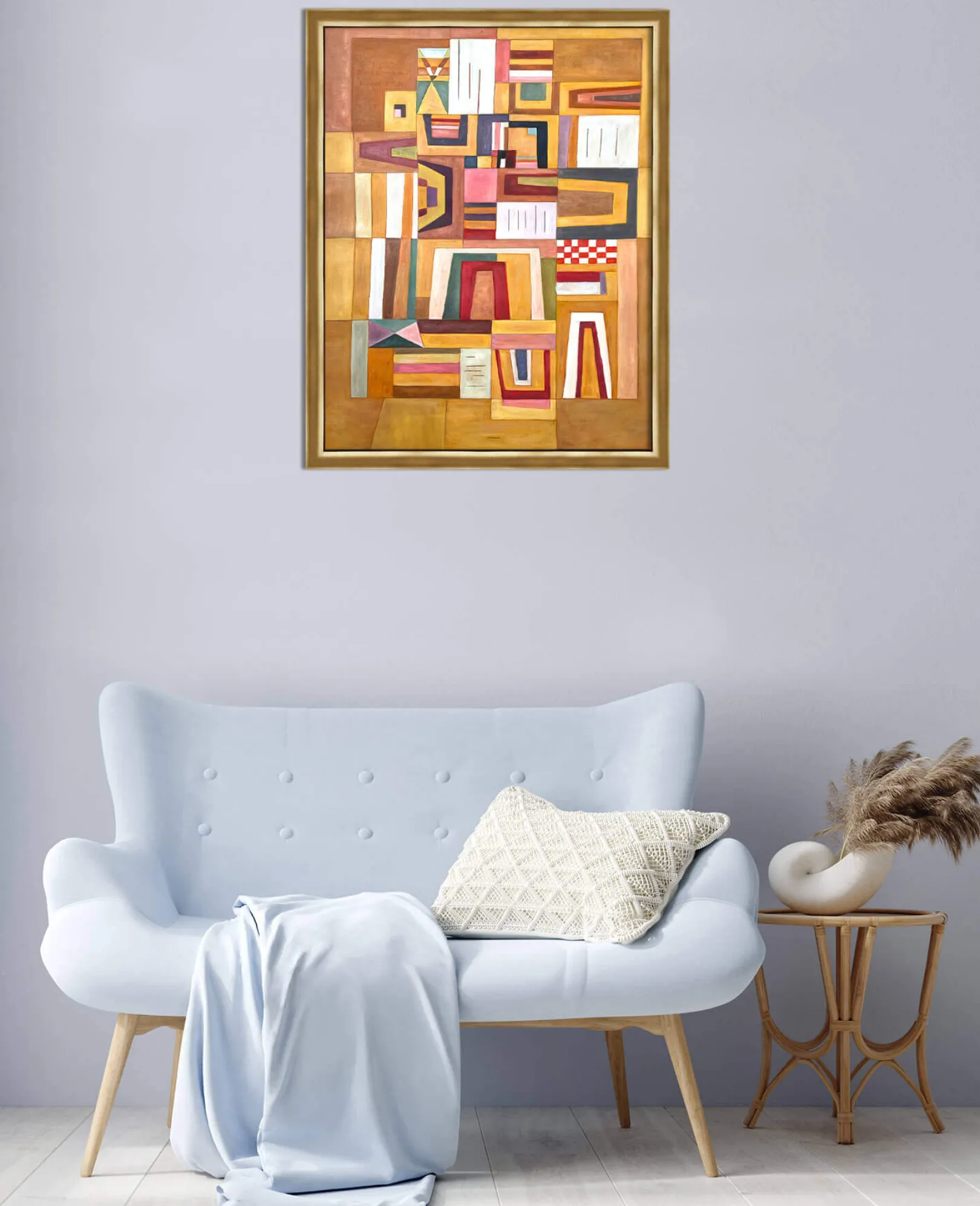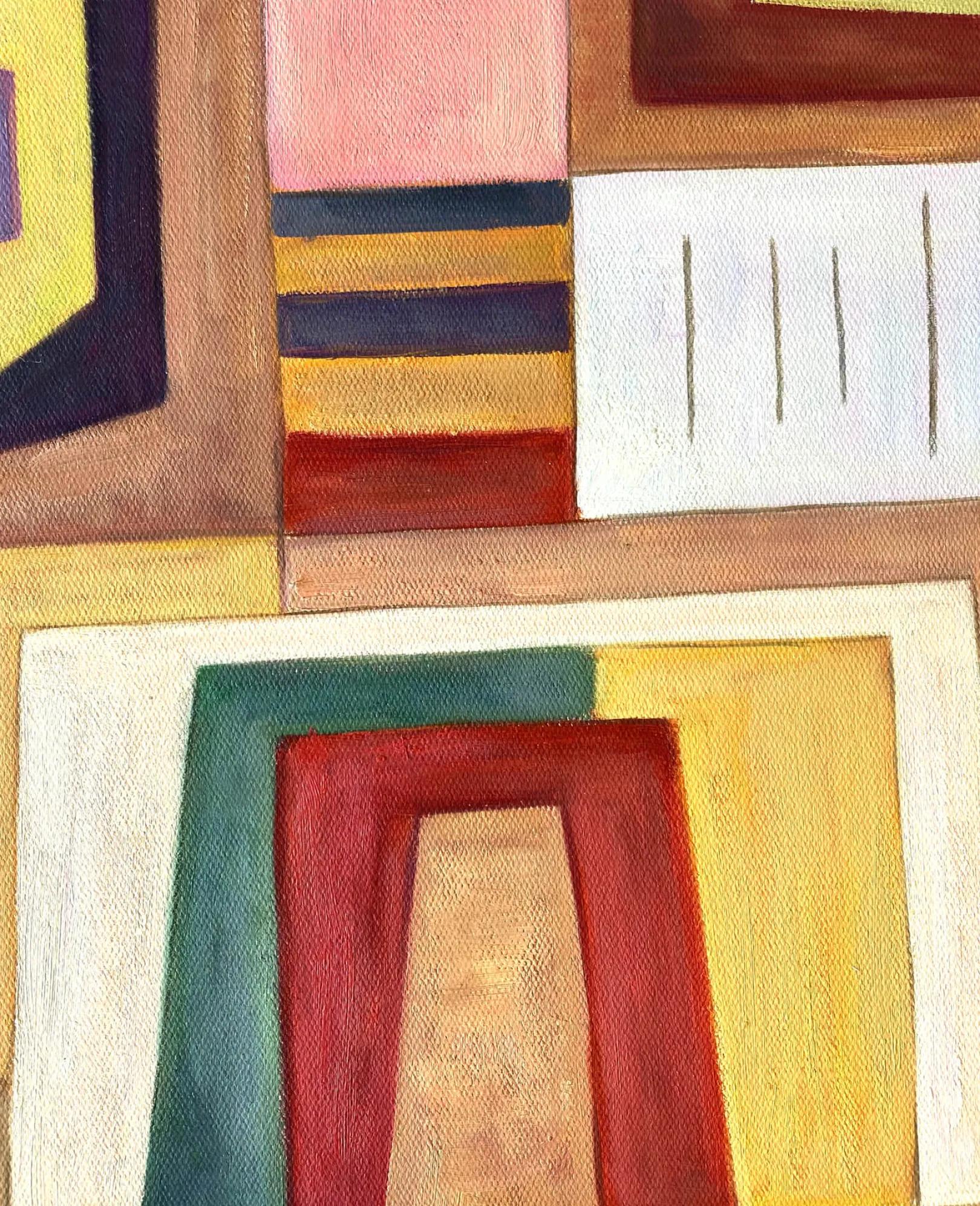 Mit Ausgleichrosa gelang Wassily Kandinsky eine Synthese aus Kubismus und Bauhaus, einer deutschen Avantgardebewegung. In diesem rechteckigen Gemälde werden geometrische Formen übereinander gelegt und dann ineinander gesteckt, bis sie ein spielerisches und buntes Puzzle bilden. Die rechten Winkel treffen auf die trapezförmigen Formen, und die dicken schwarzen Linien betonen die sehr weichen Farben.