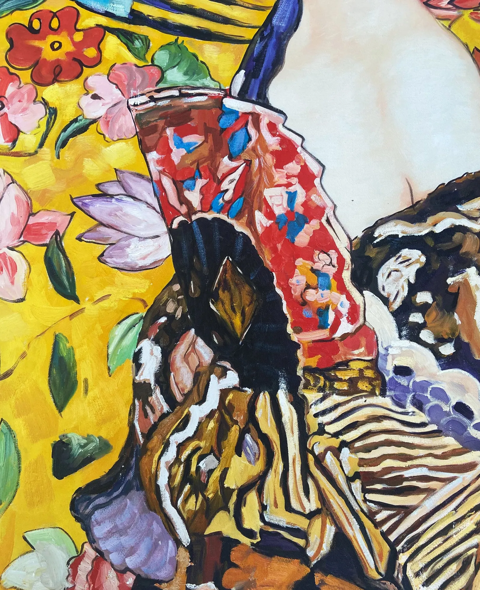 Gustav Klimt malte dieses Werk am Ende der Jugendstilbewegung. Es wird eines seiner letzten Gemälde sein. Es zeigt eine besondere Behandlung der Nacktheit. Die Haut tritt aus dem reich verzierten Stoff hervor, der sie umgibt und bedeckt. Der Hintergrund des Bildes, der Kimono, den sie trägt, und ihr Fächer sind asiatisch inspiriert.