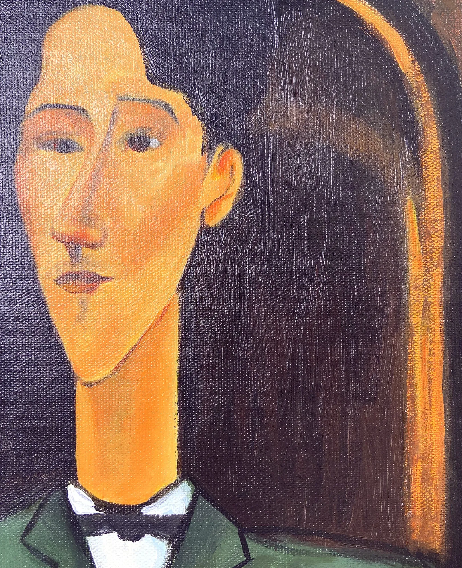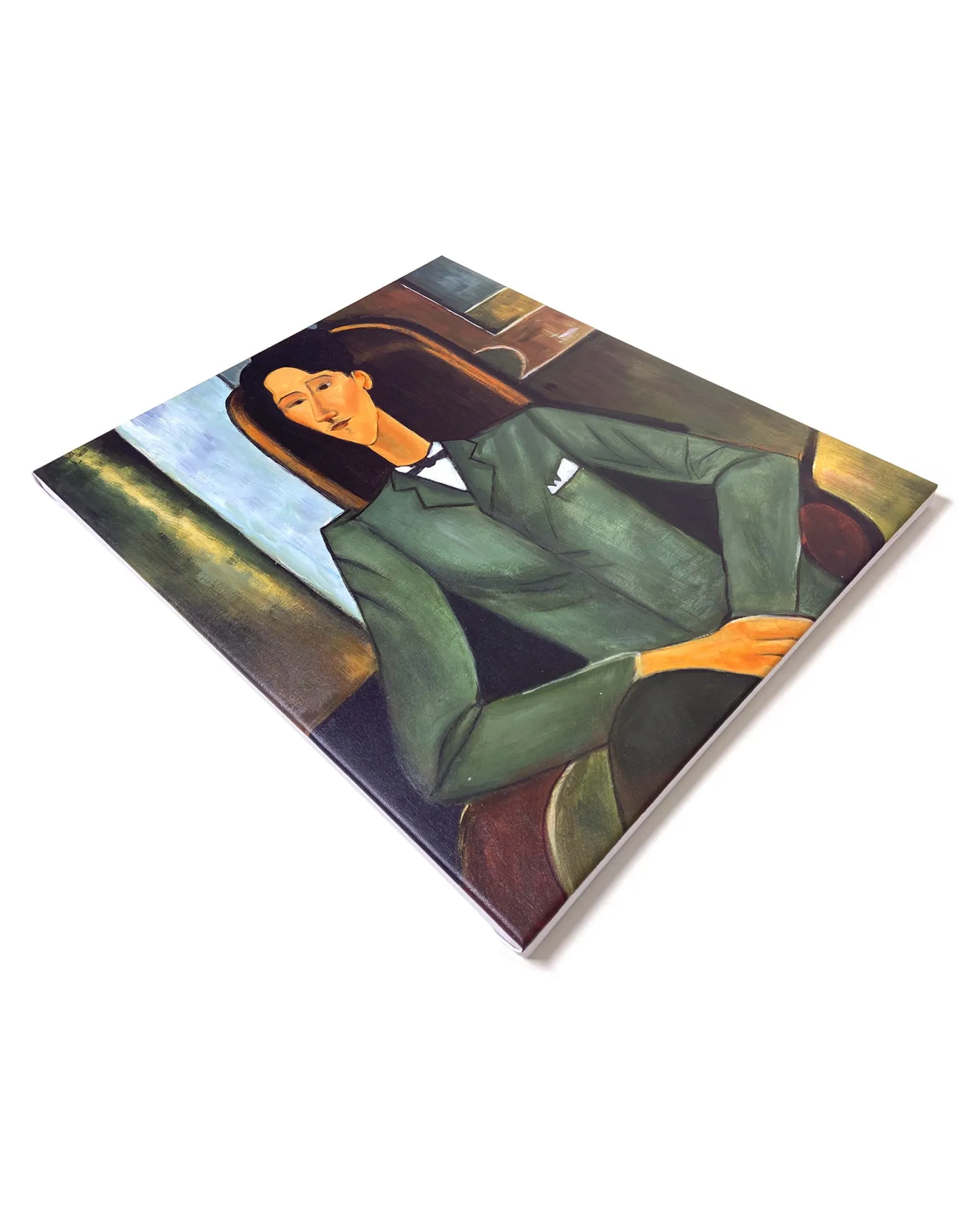 Dieses im Atelier von Moses Kisling entstandene Werk von Amedeo Modigliani, das Jean Cocteau darstellt, ist eines der Hauptwerke des Künstlers. Die Positionierung des hypermondänen Schriftstellers erinnert an das im Louvre ausgestellte Porträt Karls VII.: ein wenig eitel und widersprüchlich mit seinen übergroßen Händen und den Schulterpolstern, die versuchen, seinen Oberkörper zu verbreitern.