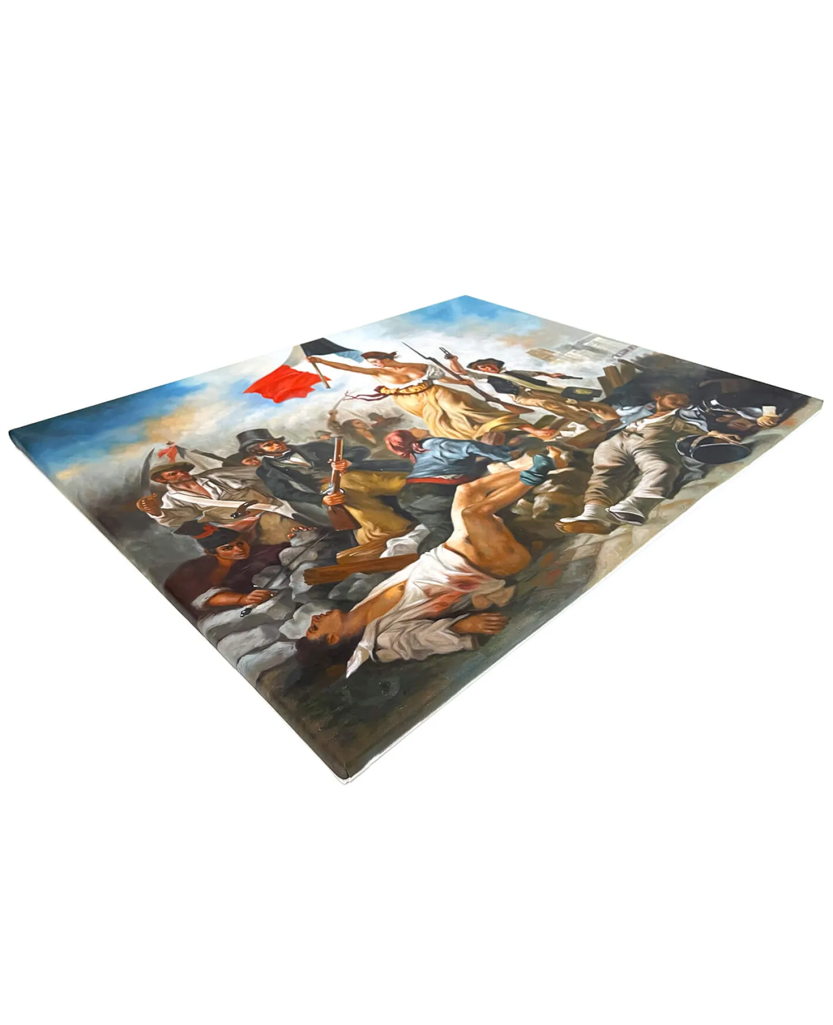 Dieses imposante Ölgemälde von Eugène Delacroix aus dem Jahr 1830 verkörpert das revolutionäre Ideal sowie den Kampf für die Freiheit. Die weibliche Hauptfigur zieht alle Blicke auf sich und steht auf halbem Weg zwischen dem Greifbaren und der Idee. Der Lyrismus und die Gewalt, die aus diesem romantischen Werk hervorgehen, überraschten zunächst die Öffentlichkeit und die Anhänger des neuen Regimes, die die Volksklassen besänftigen wollten. Die politische Bedeutung des Werks ist so groß, dass es häufig als Symbol für die Französische Republik oder die Demokratie gewählt wird.