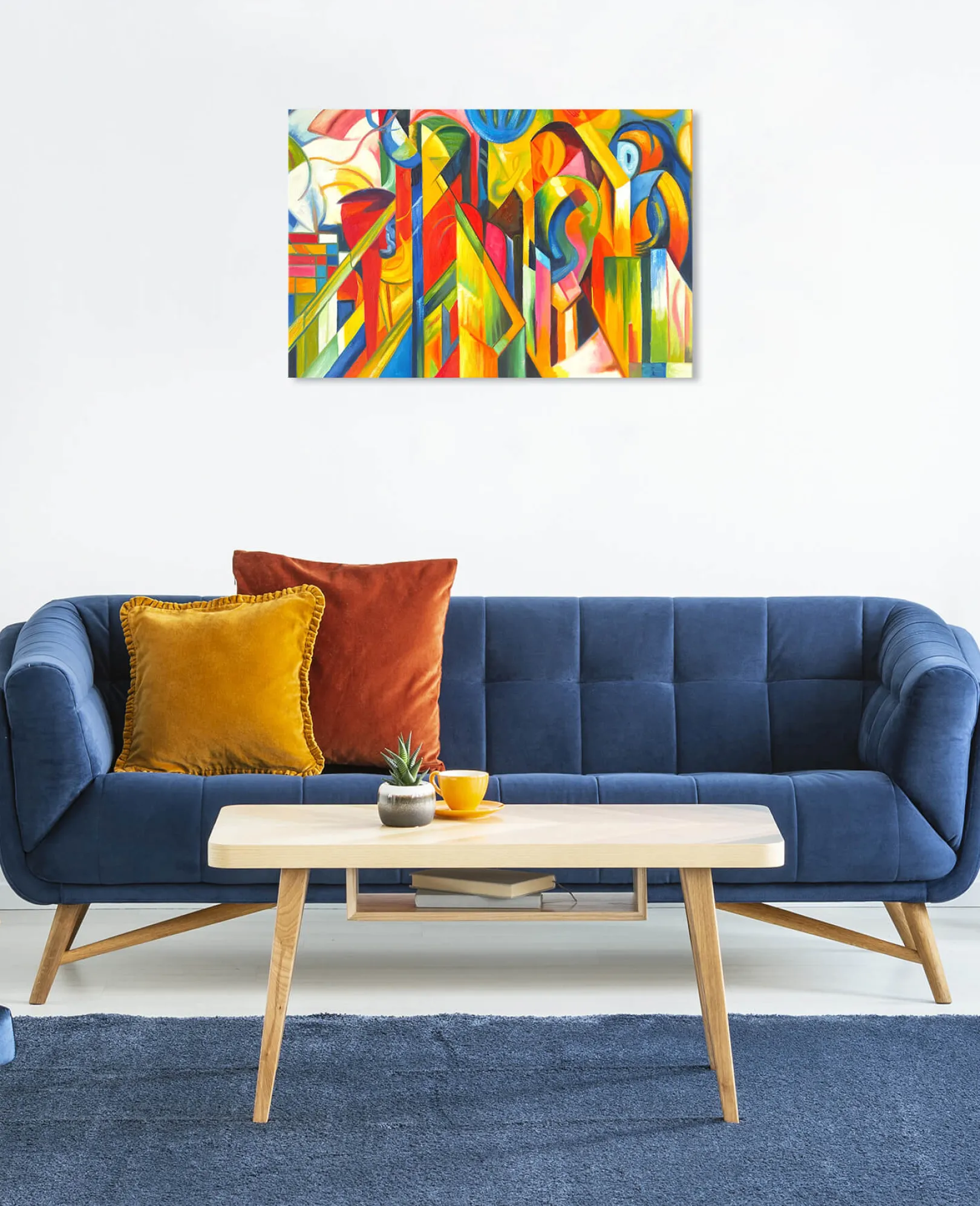 „Stallungen“ ist der Höhepunkt eines komplexen künstlerischen Prozesses, den Franz Marc Anfang 1900 begann und etwa zehn Jahre später abschloss: von der figurativen Malerei zum abstrakten Ausdruck der Bewegung. Das Pferd, ein Lieblingsthema des Künstlers, wird hier durch vielfarbigegeometrische Muster dargestellt, die sich überschneiden und ineinanderverschlingen.