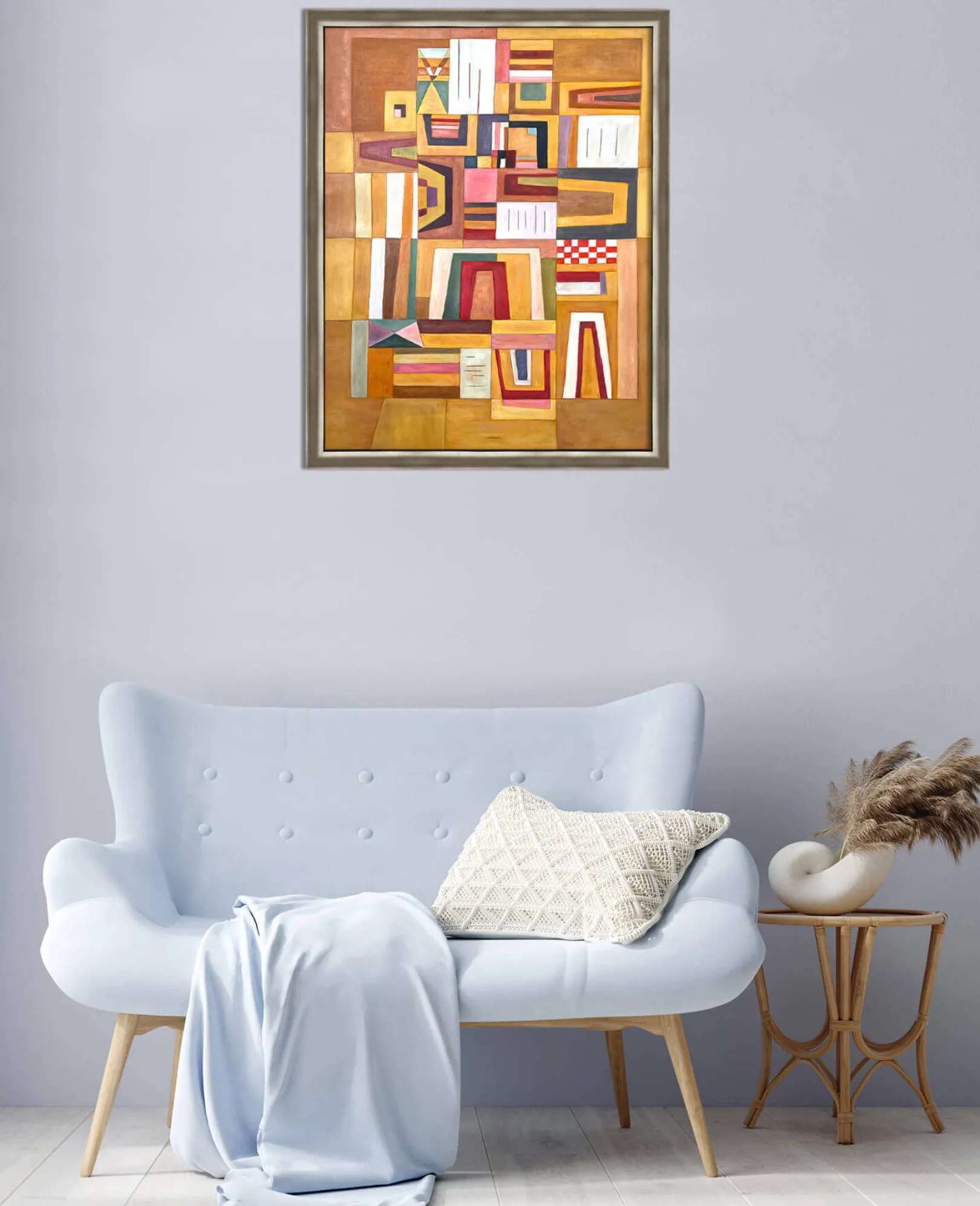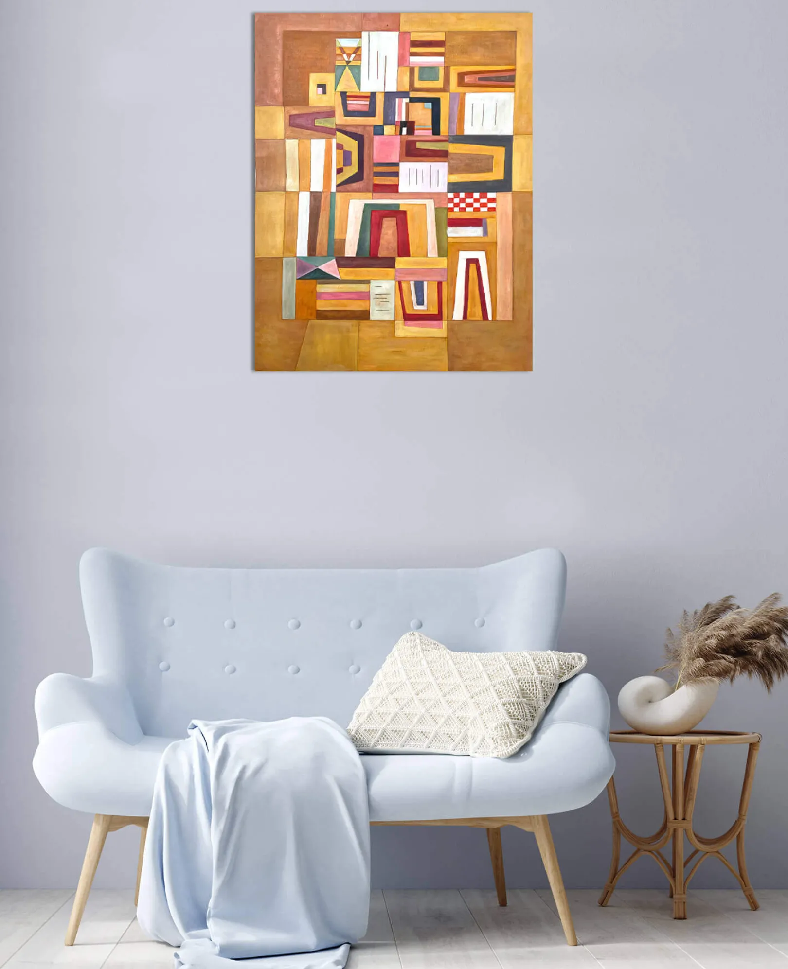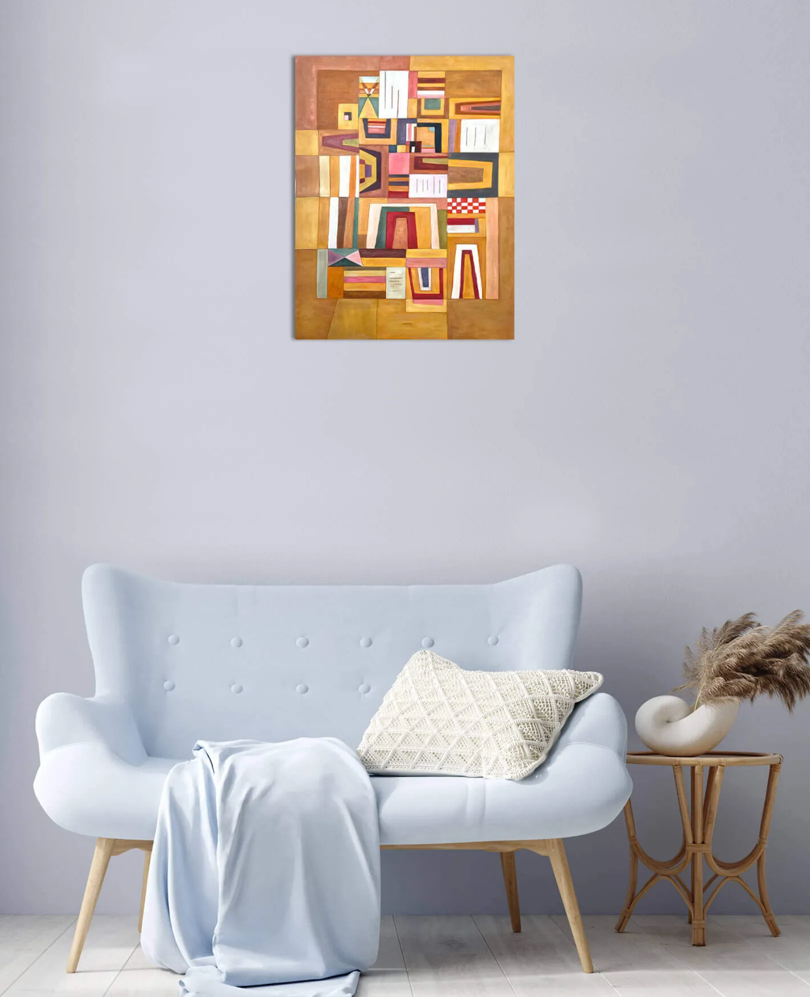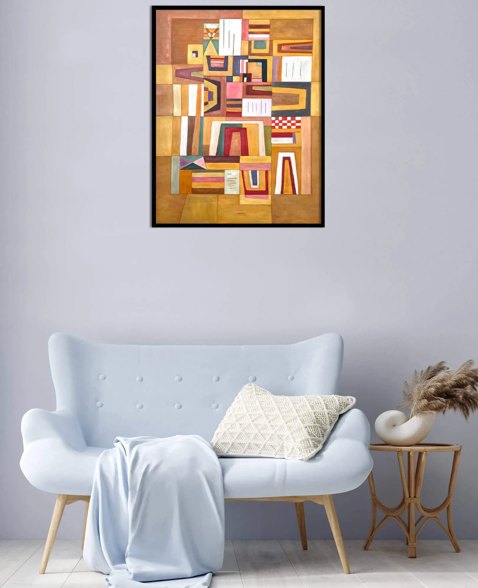 Mit Ausgleichrosa gelang Wassily Kandinsky eine Synthese aus Kubismus und Bauhaus, einer deutschen Avantgardebewegung. In diesem rechteckigen Gemälde werden geometrische Formen übereinander gelegt und dann ineinander gesteckt, bis sie ein spielerisches und buntes Puzzle bilden. Die rechten Winkel treffen auf die trapezförmigen Formen, und die dicken schwarzen Linien betonen die sehr weichen Farben.
