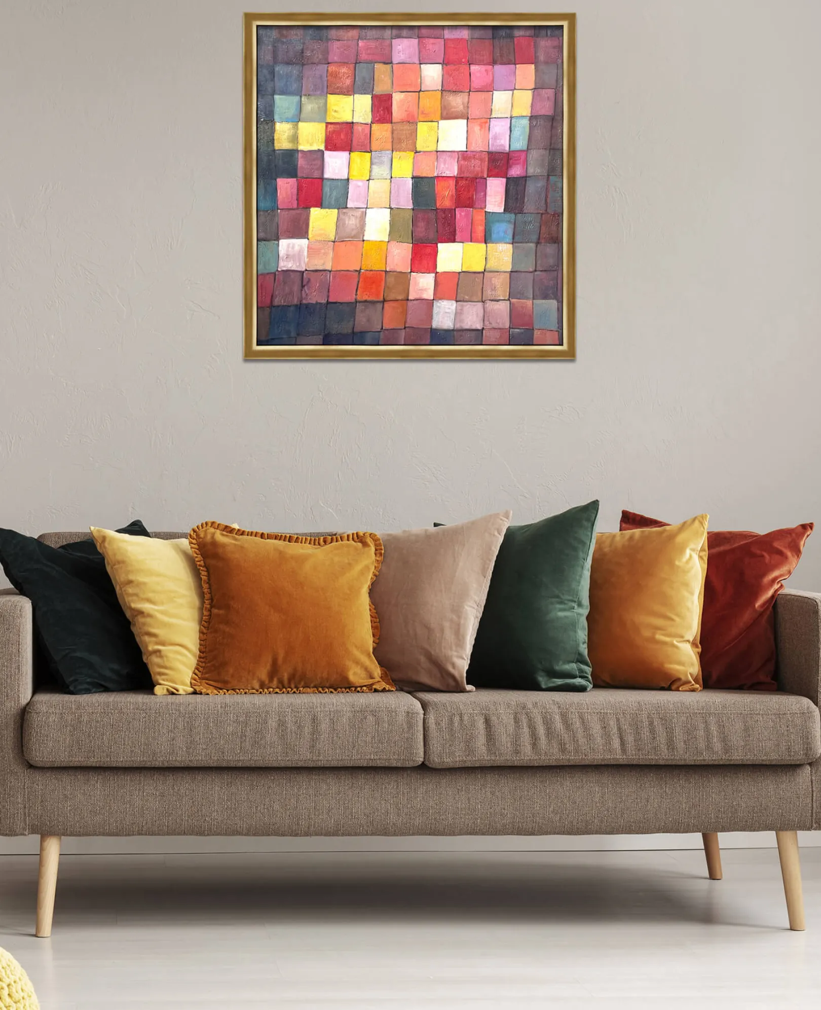 Alte Harmonie von Paul Klee greift die wichtigsten künstlerischen Vorstellungen seines abstrakten Werks auf. Die vielfarbige, von geometrischen Formen rhythmisierte Struktur, die Farbfelder und die Wandteppiche sind eine Inszenierung von einzigartiger Symbolik. In diesem Werk ist der Künstler auf der Suche nach einem Gleichgewicht zwischen zeitgenössischen Dogmen und seinem eigenen intuitiven Ansatz.