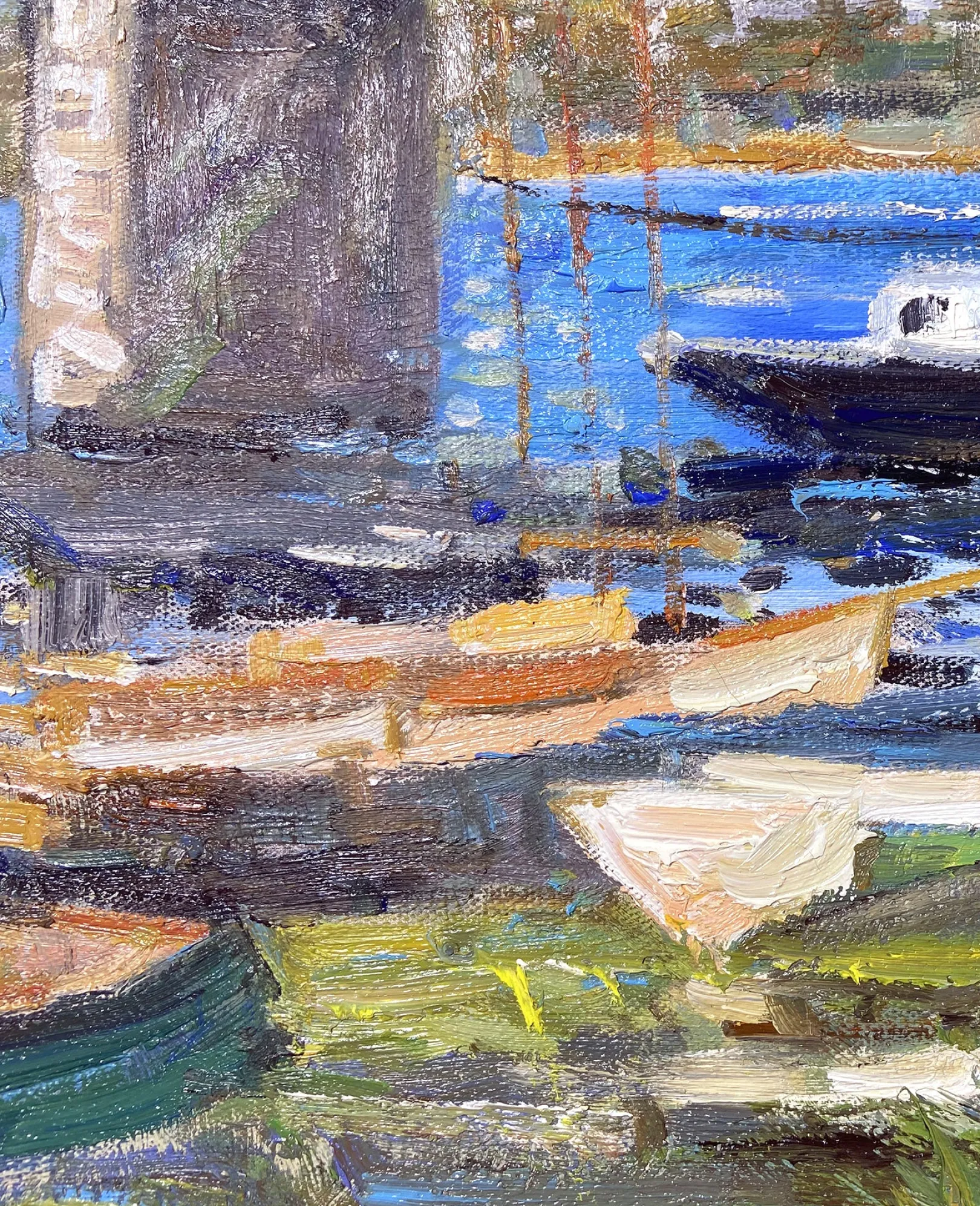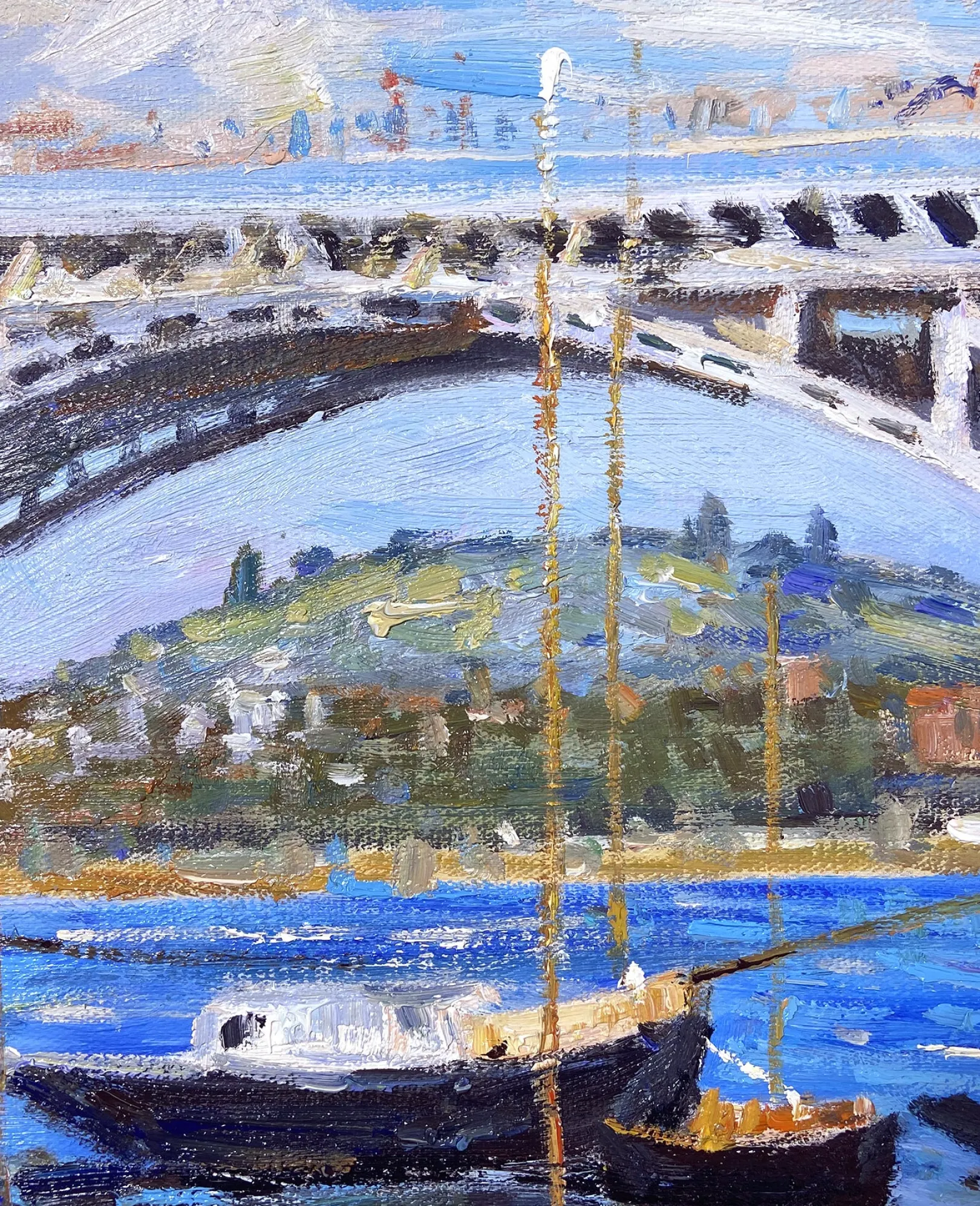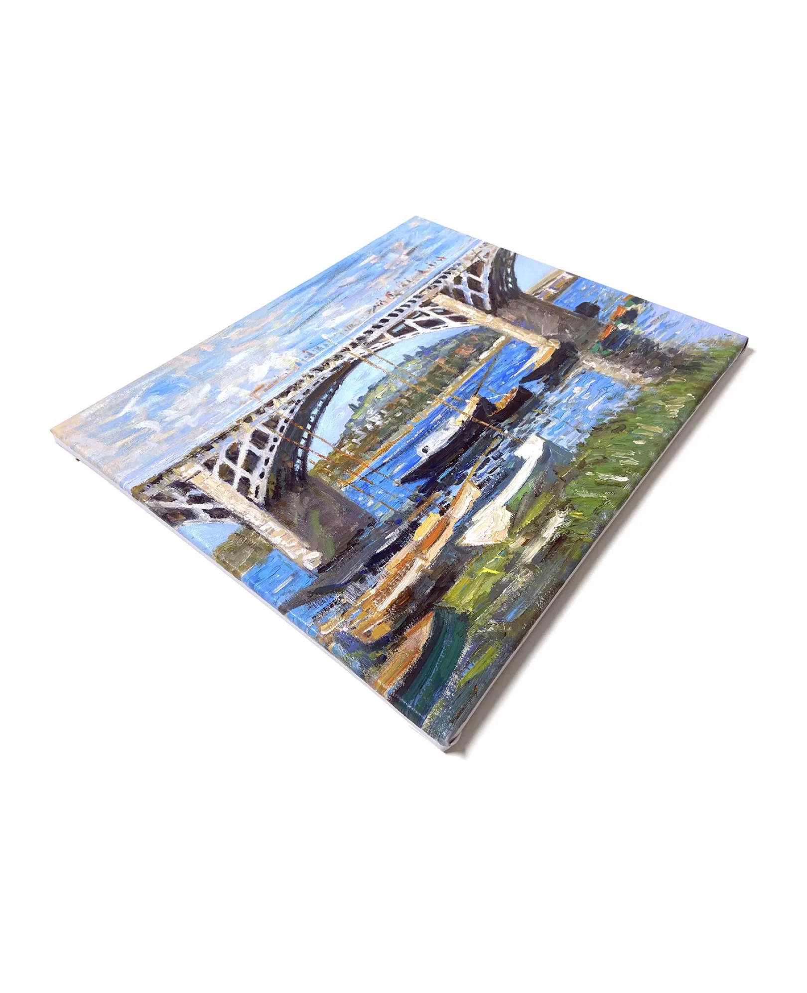 Die Brücke von Argenteuil wurde von Claude Monet sieben Mal dargestellt. Das zeigt, wie sehr der Künstler an diesem Motiv hing. In diesem Werk wird der Vordergrund von Segelbooten eingenommen, die ankern, und die Lichteffekte auf den Masten ermöglichen das Spiel mit Komplementärfarben, was die Impressionisten damals so sehr schätzten.